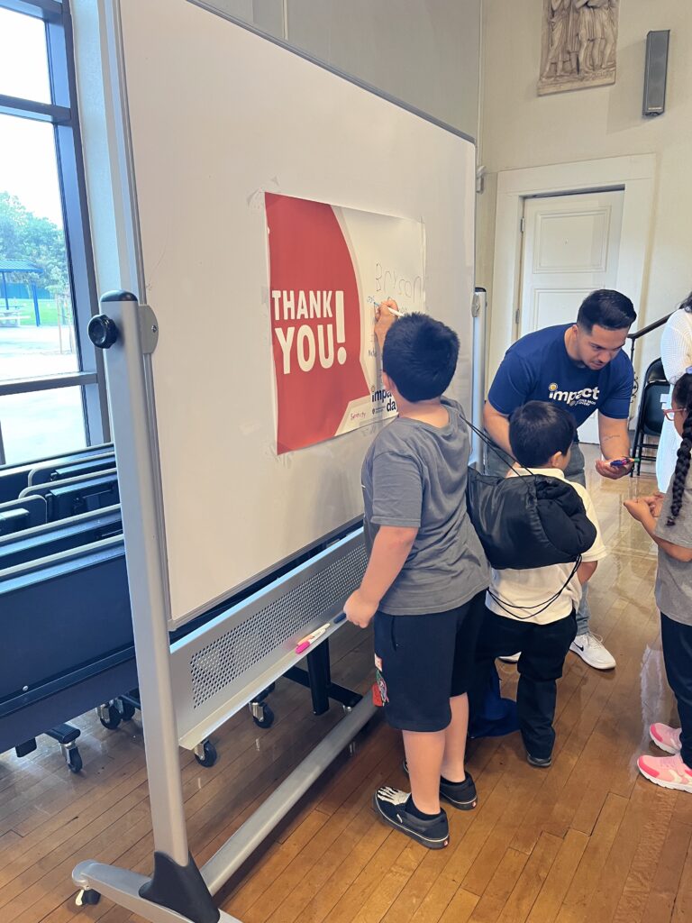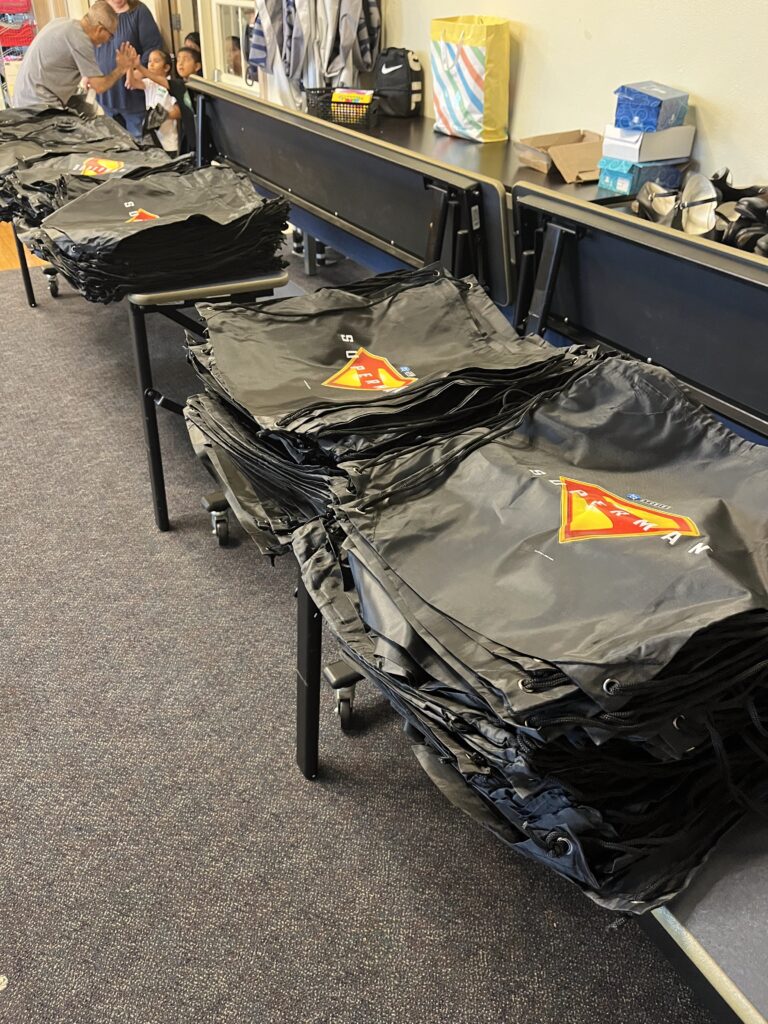 Through the Pasadena Educational Foundation’s partnership with Warner Bros. Discovery, Madison students were gifted brand-new jackets and shoes through Operation Warm. The Madison auditorium was turned into a “store” where students had the opportunity to pick out their own jackets and shoes. Tables were set up with piles of colorful new coats. There was a sitting area for children to sit and try on their new shoes before making their decision. Like a mini shopping experience, the kids were personally led around the different stations by volunteers to help make sure that everything fit nicely. As a special surprise, Warner Bros. Discovery also gifted the Madison students with Superman drawstring bags.