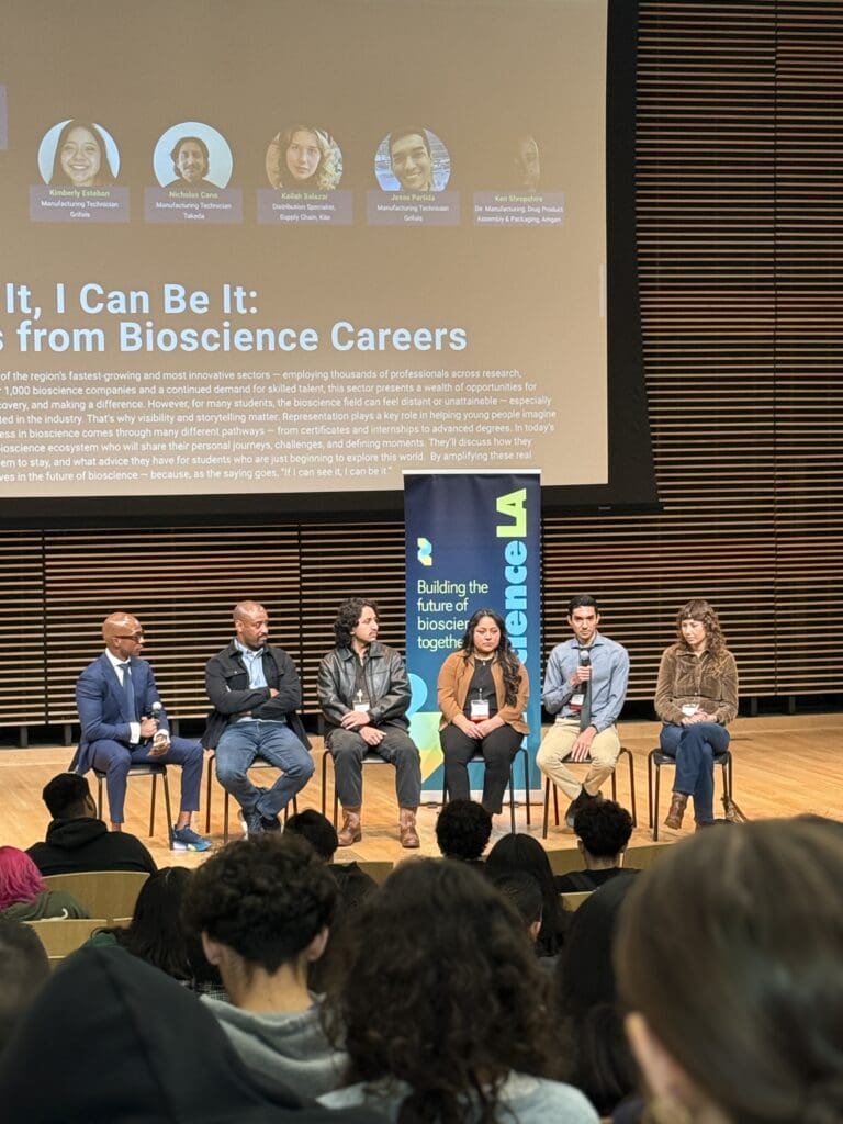 Throughout the day, students engaged with professionals across the field during interactive panels and networking sessions. The first panel, “If I Can See It, I Can Be It – Real Stories from Bioscience Careers,” was facilitated by Pasadena City Councilmember Tyrone Hampton, offering valuable insight into real-world career pathways in science and technology.