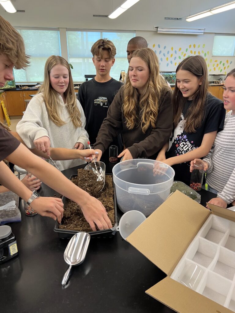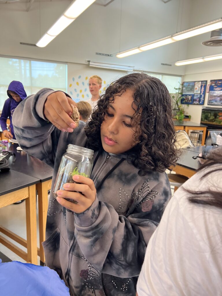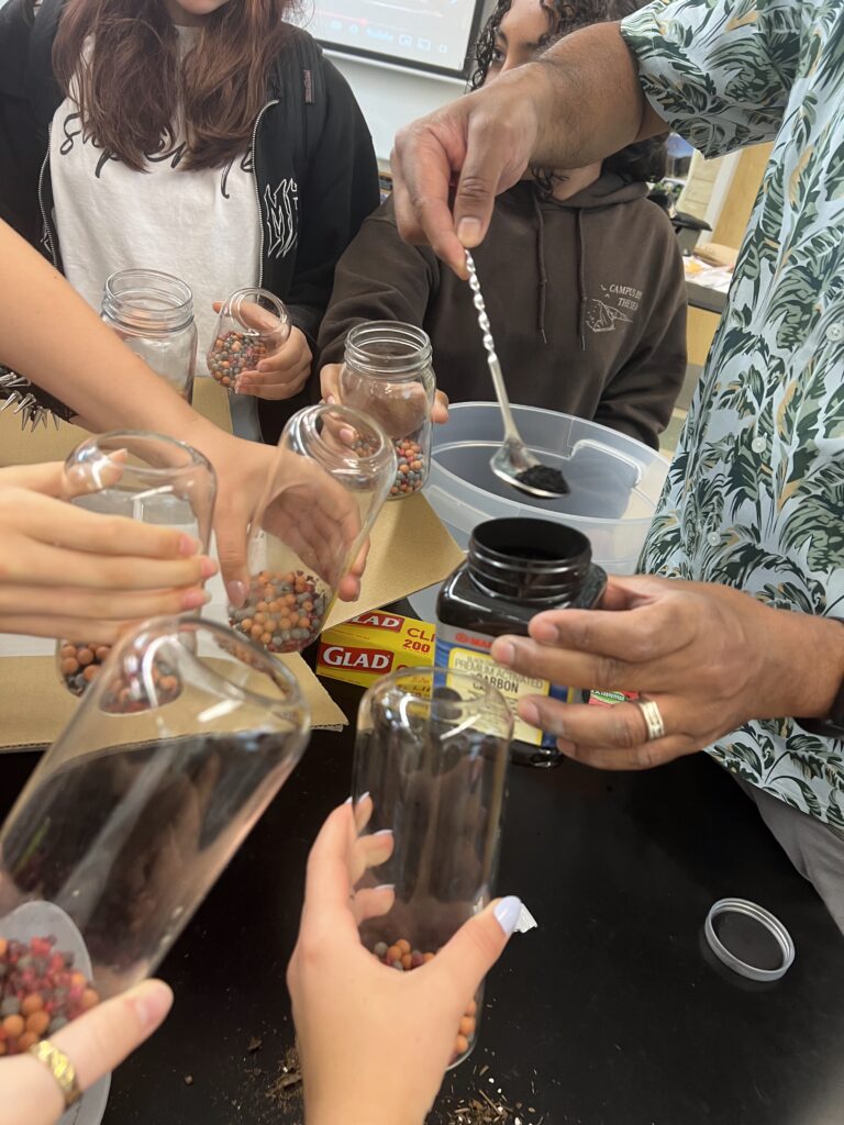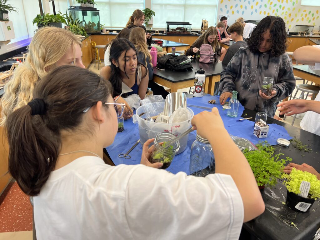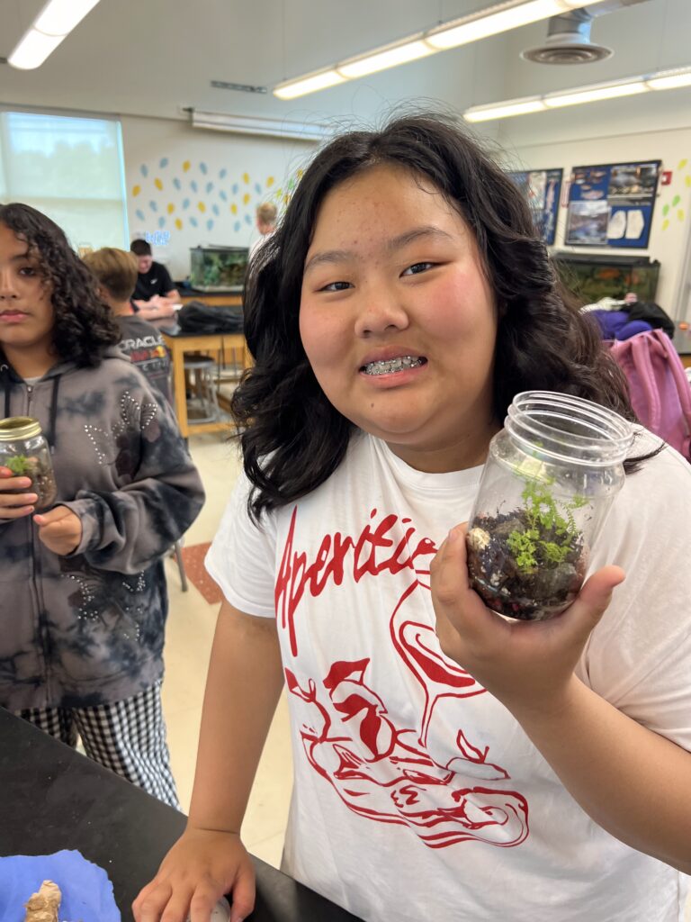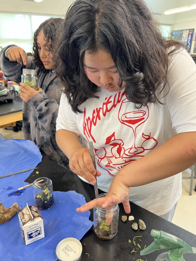 Mr. Dev’s students designed and planted their own miniature terrariums. From decorative rocks to arrangements of ferns and moss, students shaped their own little world of plant life. Some terrariums also had ʻōpaeʻula, or Hawaiian Red Shrimp, as extra residents. After creating these ecosystems, students visited their terrariums daily, monitoring their plants and shrimp and maintaining them.