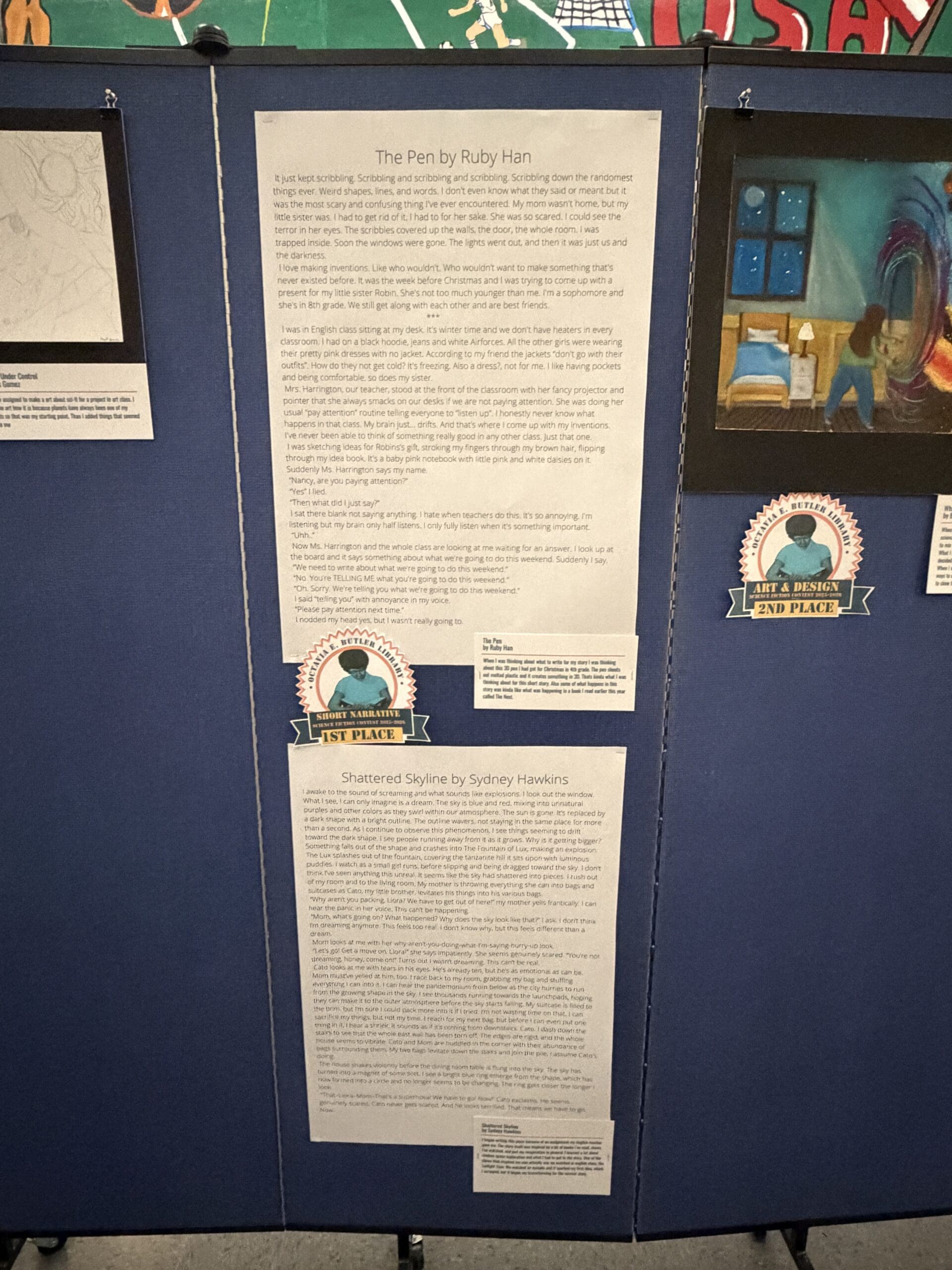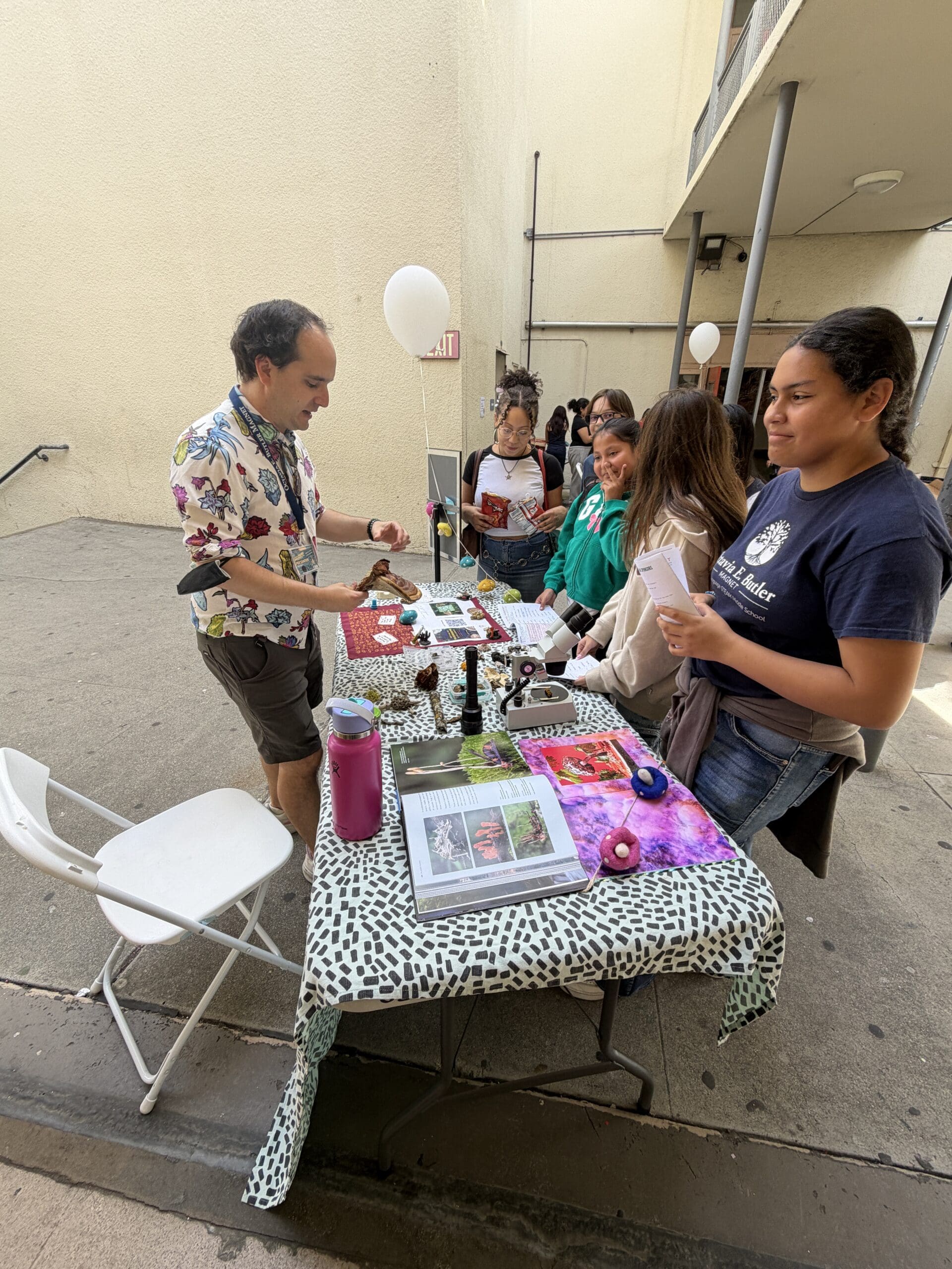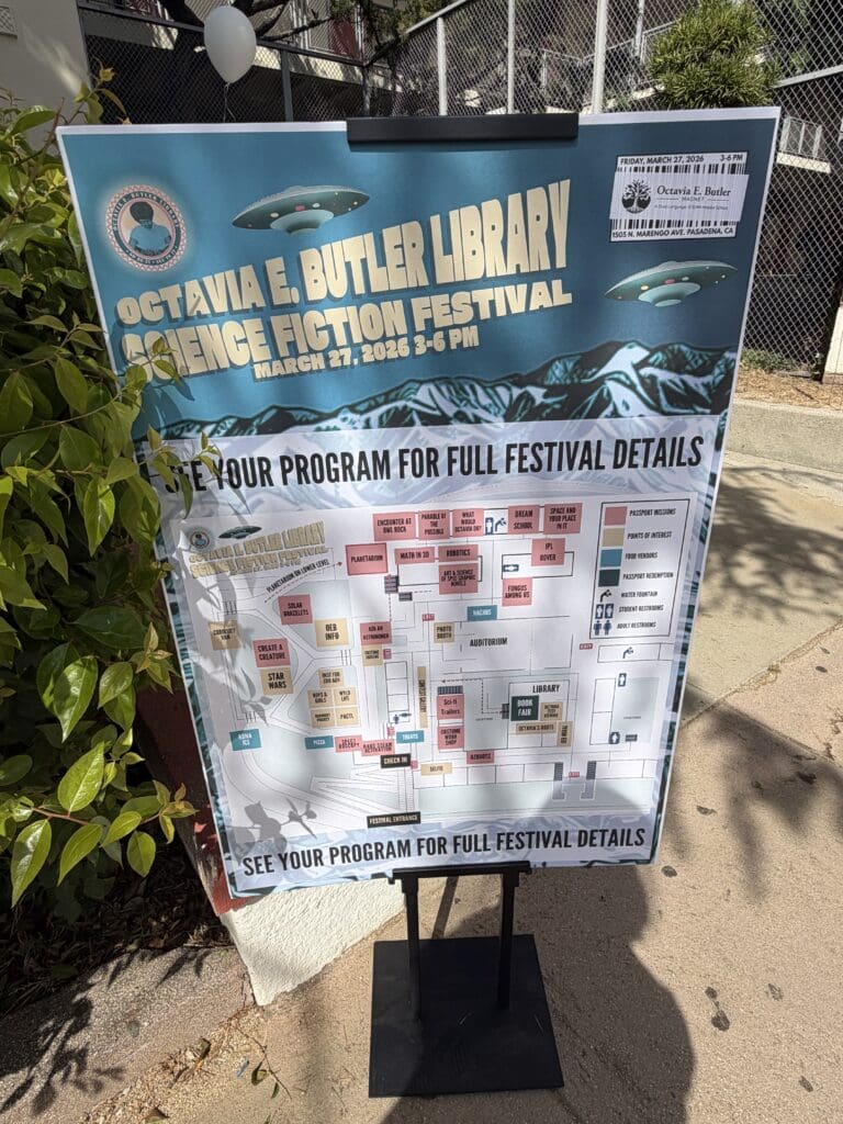 The festival was packed with energy from start to finish. Students and their families explored a wide range of booths and demonstrations from exhibitors like JPL, Occidental College, and Remainders Creative Reuse, with something exciting around every corner. As they made their way through the event, students collected passport stamps at each stop, and once their passports were filled, they could head to the school library to trade them in for prizes, giving the day a sense of adventure that kept excitement high throughout. The day also featured a showcase of original student work, where young writers and artists displayed short stories and artwork inspired by the legacy of Octavia E. Butler herself. It was a reminder of just how much creative talent lives inside Butler Magnet’s walls.